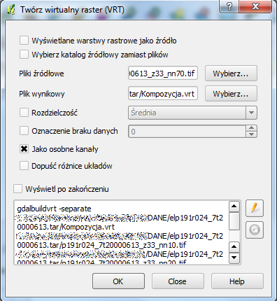 i są to dane uwolnione. Dalej określamy plik wynikowy dla naszego
