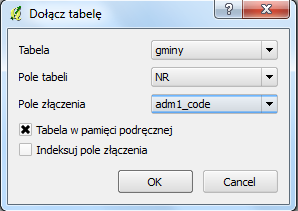 otwieramy okno Dołącz tabelę i wybieramy odpowiednie dane do