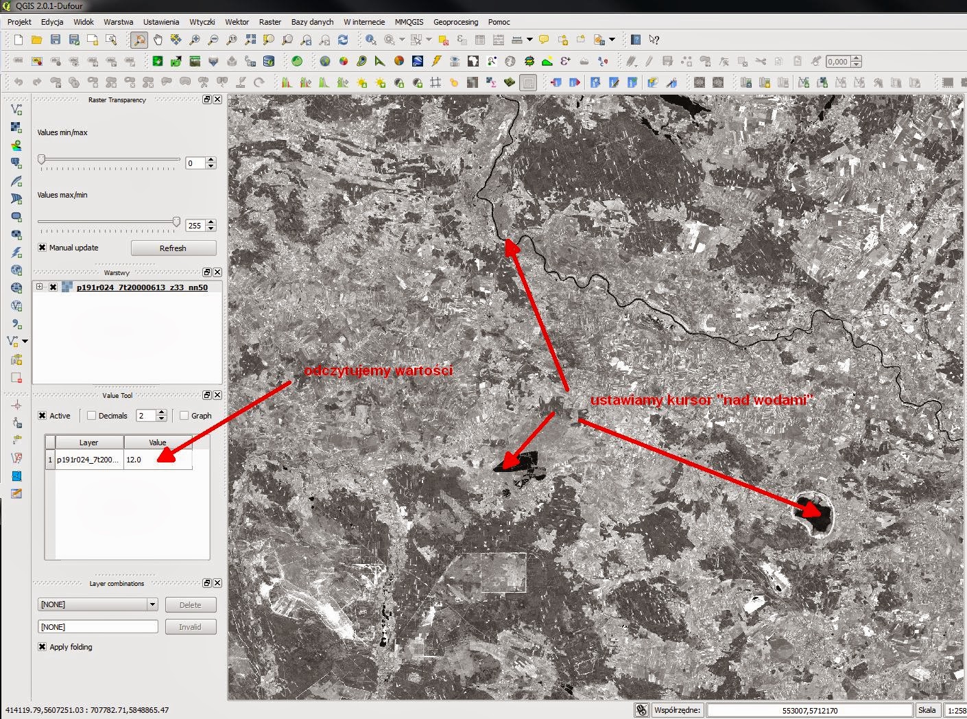 Value Tool, które pozwoli określić nam wartość piksela rastra,