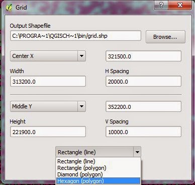 Grid Layer i z menu rozwijalnego wybieramy Hexagon (poligon). Ponadto, jeżeli nie odpowiada nam wielkość oczek możemy je przeskalować do żądanego rozmiaru.